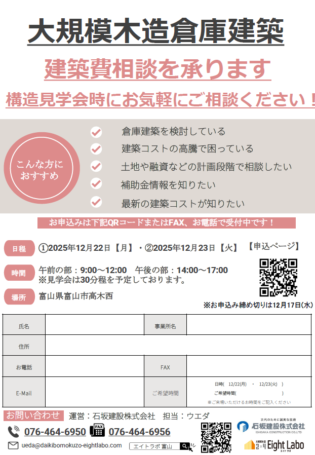 富山県内初事例!木造2×4クレーン付倉庫 見学会!